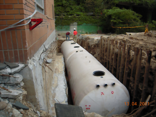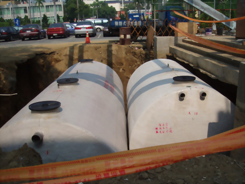 工程案名:台南縣大內鄉天文展示館 本案採用泓泉牌(TS) 10、50人份各1組 本建案使用本公司產品TS-10人份及TS-50人份預鑄式污水處理槽,安裝於台南大內天文館建案工程,本新建汙水設施主要處理槽內日常生活之沐浴廢水,處理方式以目前處理效率最穩定、可靠;操作方便之接觸曝氣法處理之設計參數為設計數據;其原理為以鼓風機強制曝氣,使流入之廢水充分攪拌球狀浮動生物濾材並提供水中溶氧藉此作為微生物懸浮生長所需,經一段時間後,即開始生成生物污泥(微生物)並形成生物觀,於好氧狀態下吸附、氧化廢水中有機物的處理方法,固於曝氣槽內添家球狀浮動生物濾材,不需於放流槽內添加生物藥劑,避免業主於使用期間及因抽肥後水位降低造成生物濾材堵塞槽內溢流口圖增加維護困難。