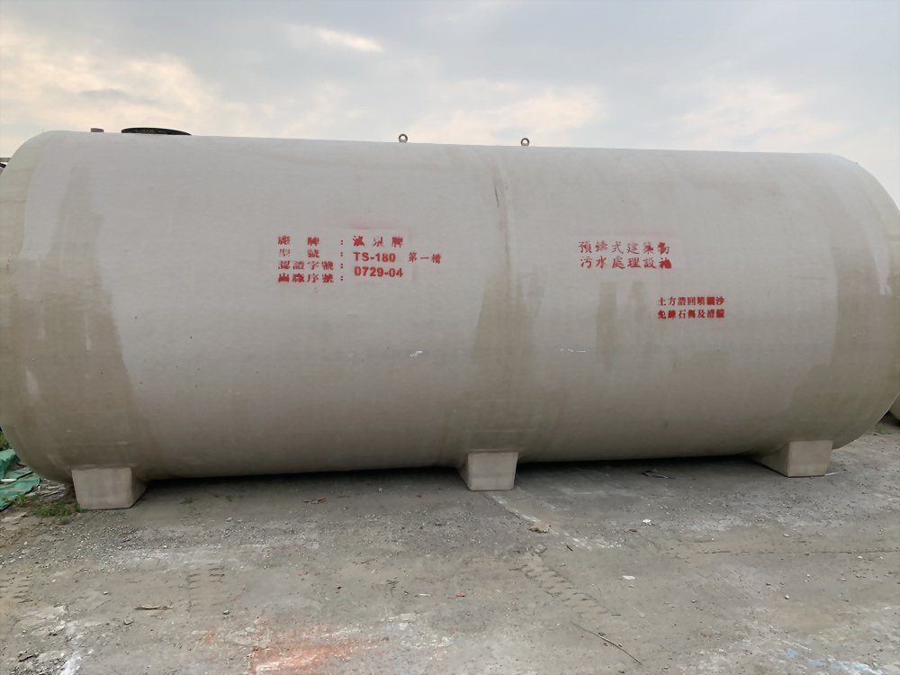 泓泉牌TS-180型號預鑄式建築物汙水處理設施,經環保署與內政部審共同審定通過並給予登記。本產品經廠鑄完成後,運至工地配接外管及機械設備。基本上採地上式、半地下式或地下式等皆可,但為兼顧實用與美觀,本產品應以埋入地下為宜,如此經覆土(施工)完成後,地面及人孔蓋皆為平坦,地上空間得以有效利用之。