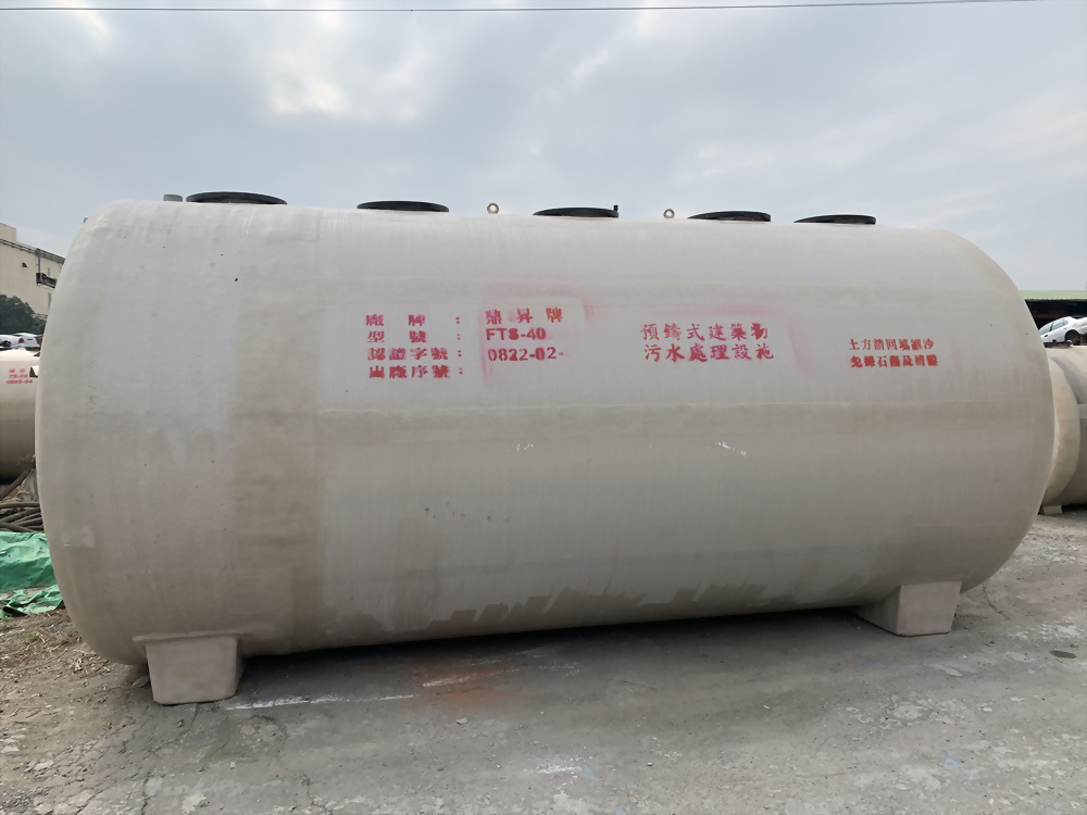 鼎昇牌FTS-40型號預鑄式建築物汙水處理設施,經環保署與內政部審共同審定通過並給予登記。本產品經廠鑄完成後,運至工地配接外管及機械設備。基本上採地上式、半地下式或地下式等皆可,但為兼顧實用與美觀,本產品應以埋入地下為宜,如此經覆土(施工)完成後,地面及人孔蓋皆為平坦,地上空間得以有效利用之。